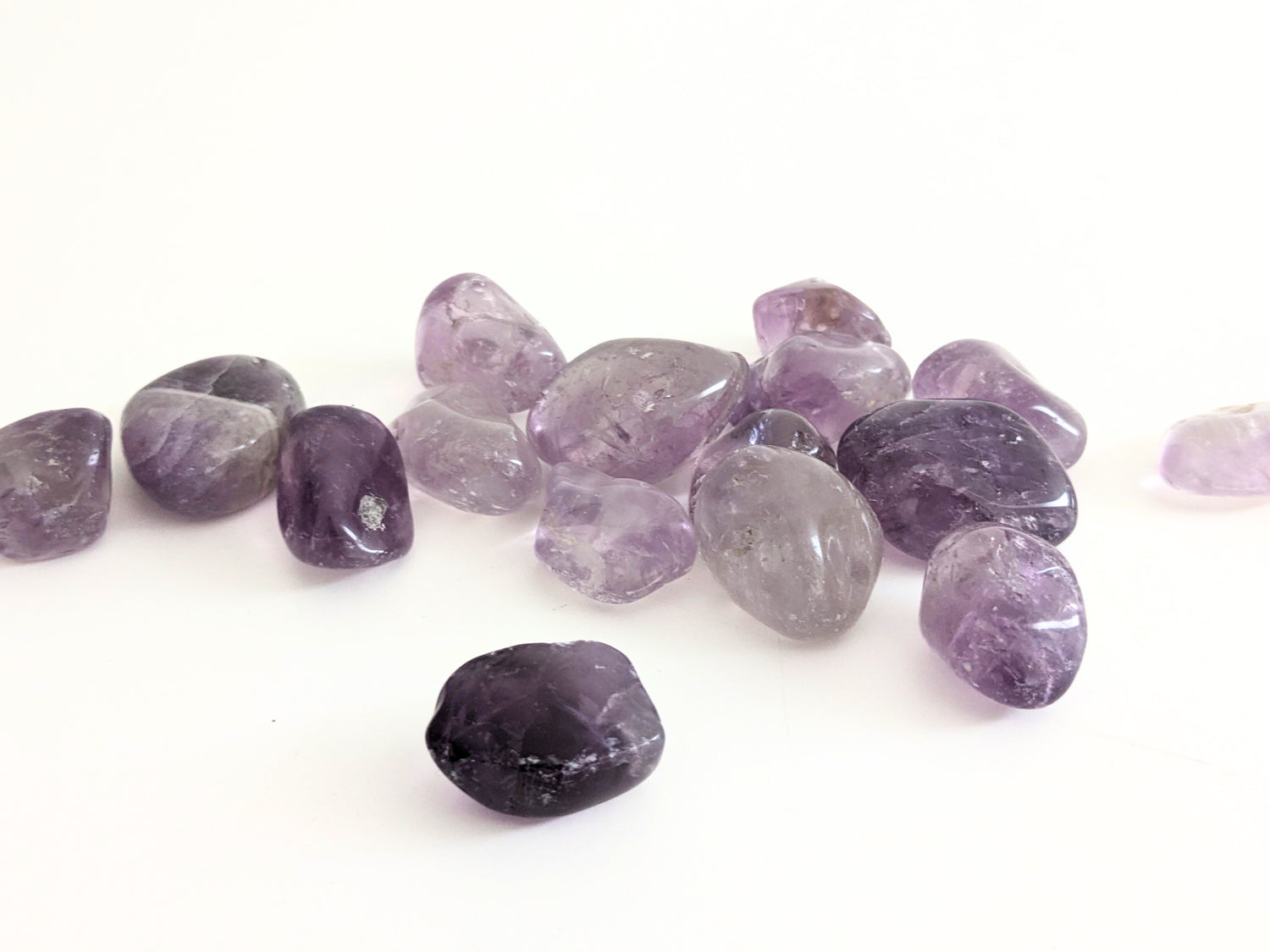 De amethist is een donkerpaarse steen, deze kleur heeft de steen voornamelijk te danken aan de sporen van ijzer en titaan. De steen is afkomstig uit Brazilië. Deze steen staat bekend om het geven van ontspanning, bescherming en innerlijke rust. Ook kan hij de harmonie in je leven brengen.