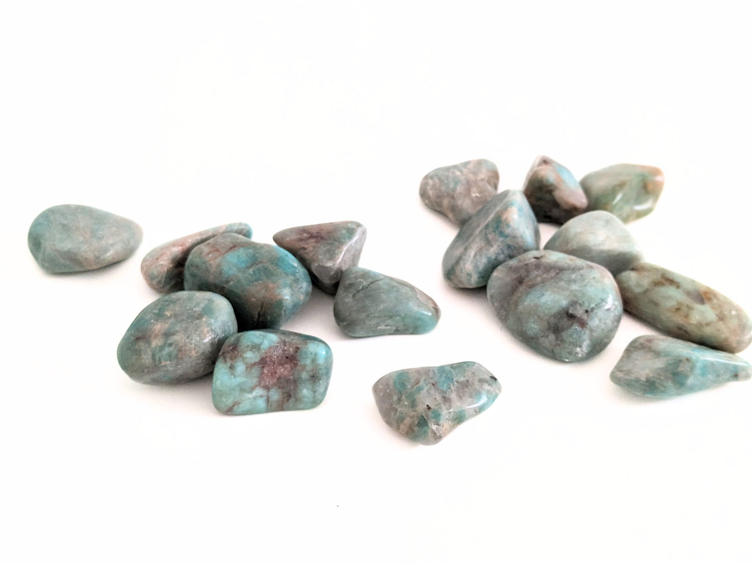 De amazoniet heeft een mooie groen tot turquoise kleur. Het meeste amazoniet is wordt gevonden in Rusland, maar tegenwoordig is het ook veel in Amerika te vinden. Deze steen staat bekend om zijn beschermende werking. Hij brengt balans en harmonie in je leven.