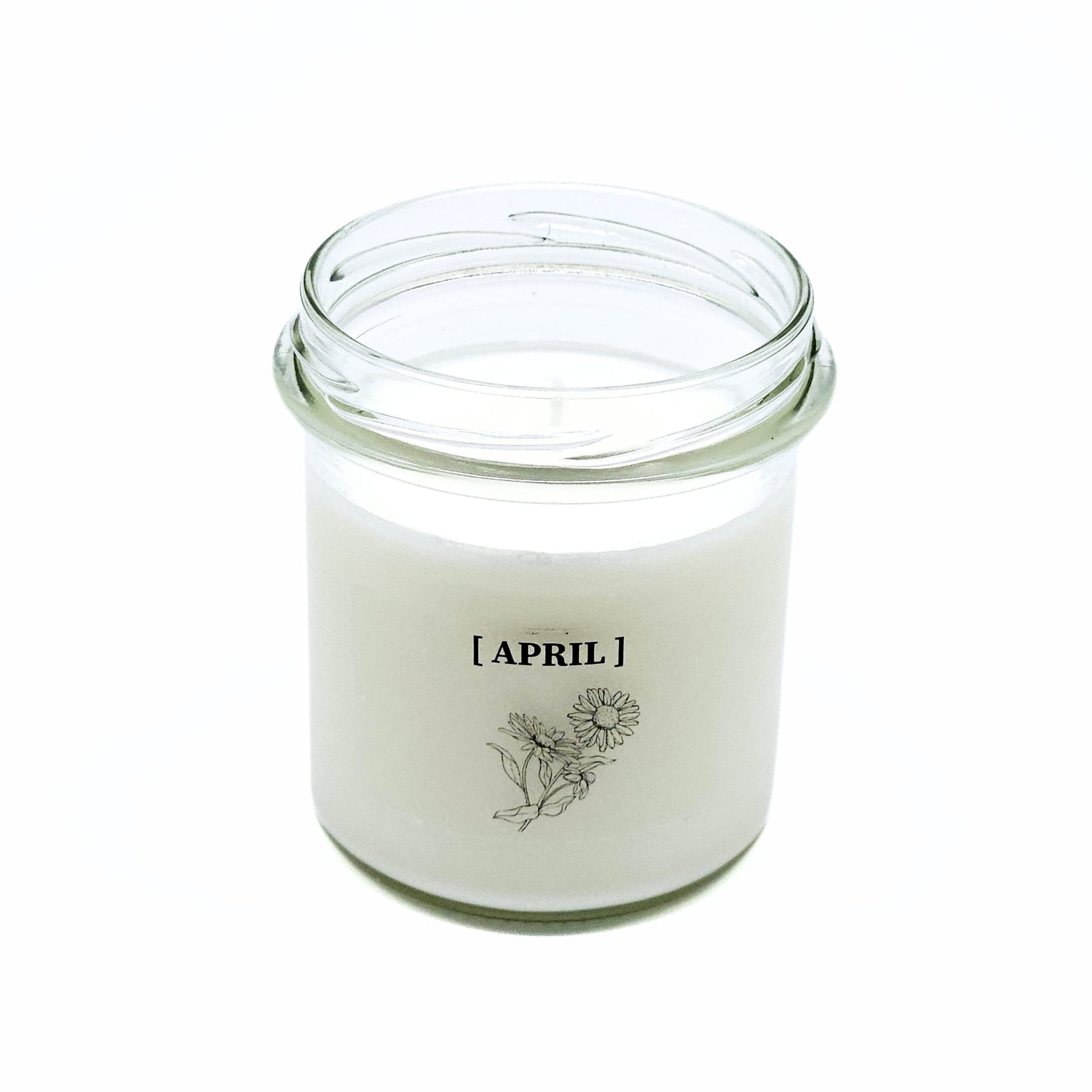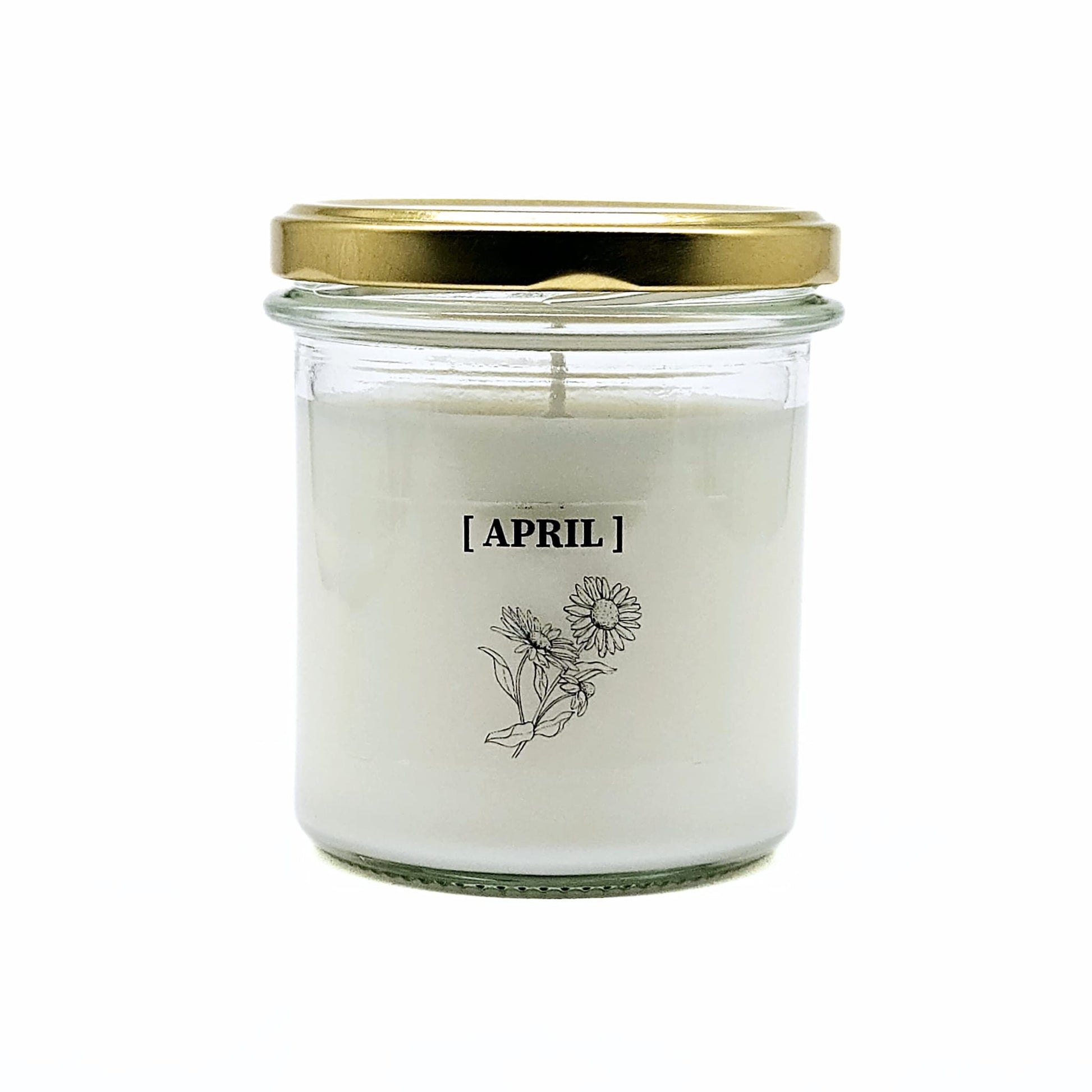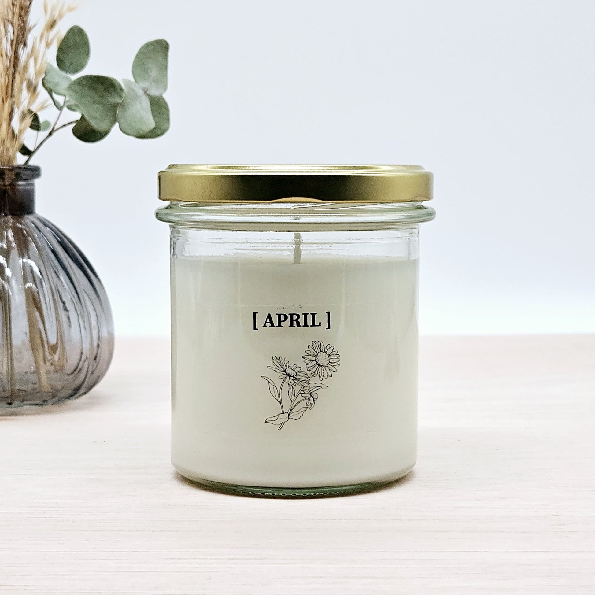 Candlelight-on - geurkaars met geboortebloem en geboortedatum - april - o.b.v. sojawas en etherische oliën