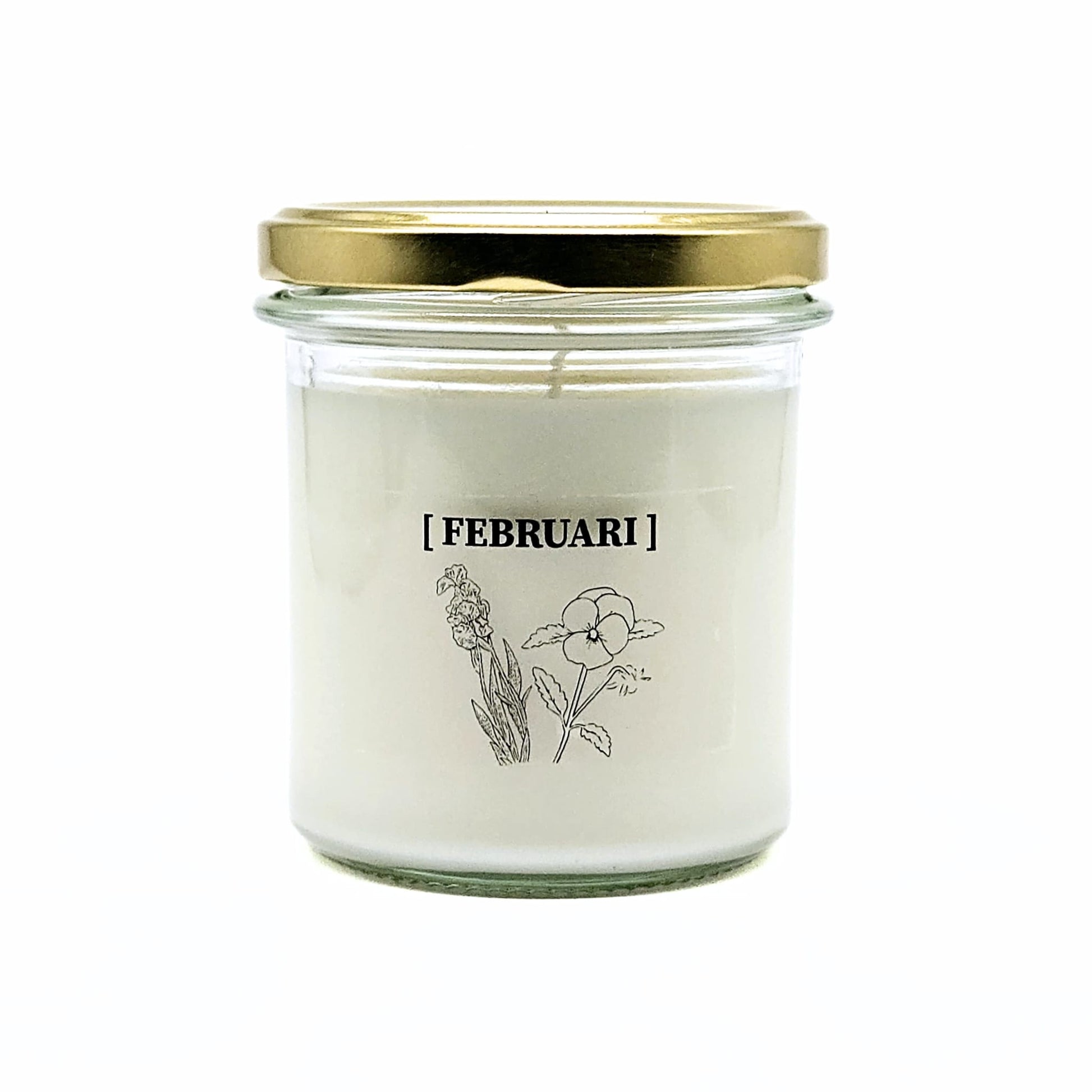 Candlelight-on - geurkaars met geboortebloem en geboortedatum - februari - o.b.v. sojawas en etherische oliën