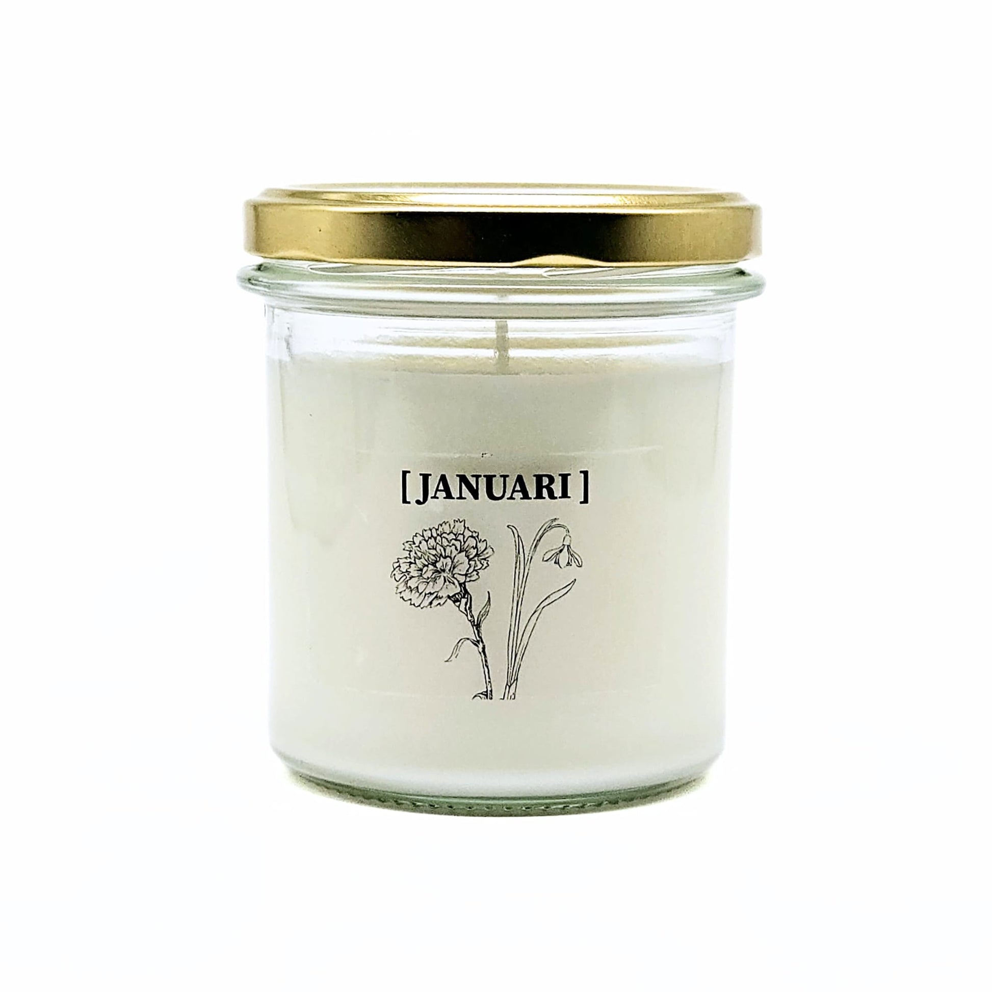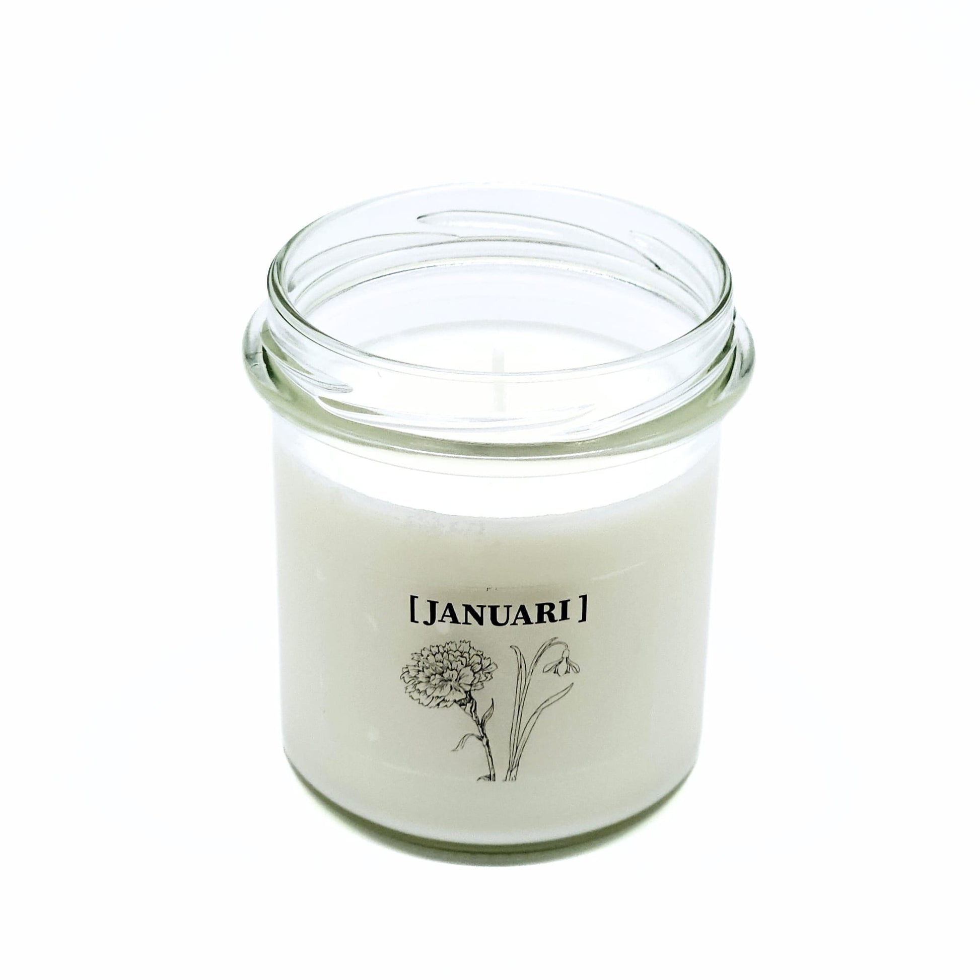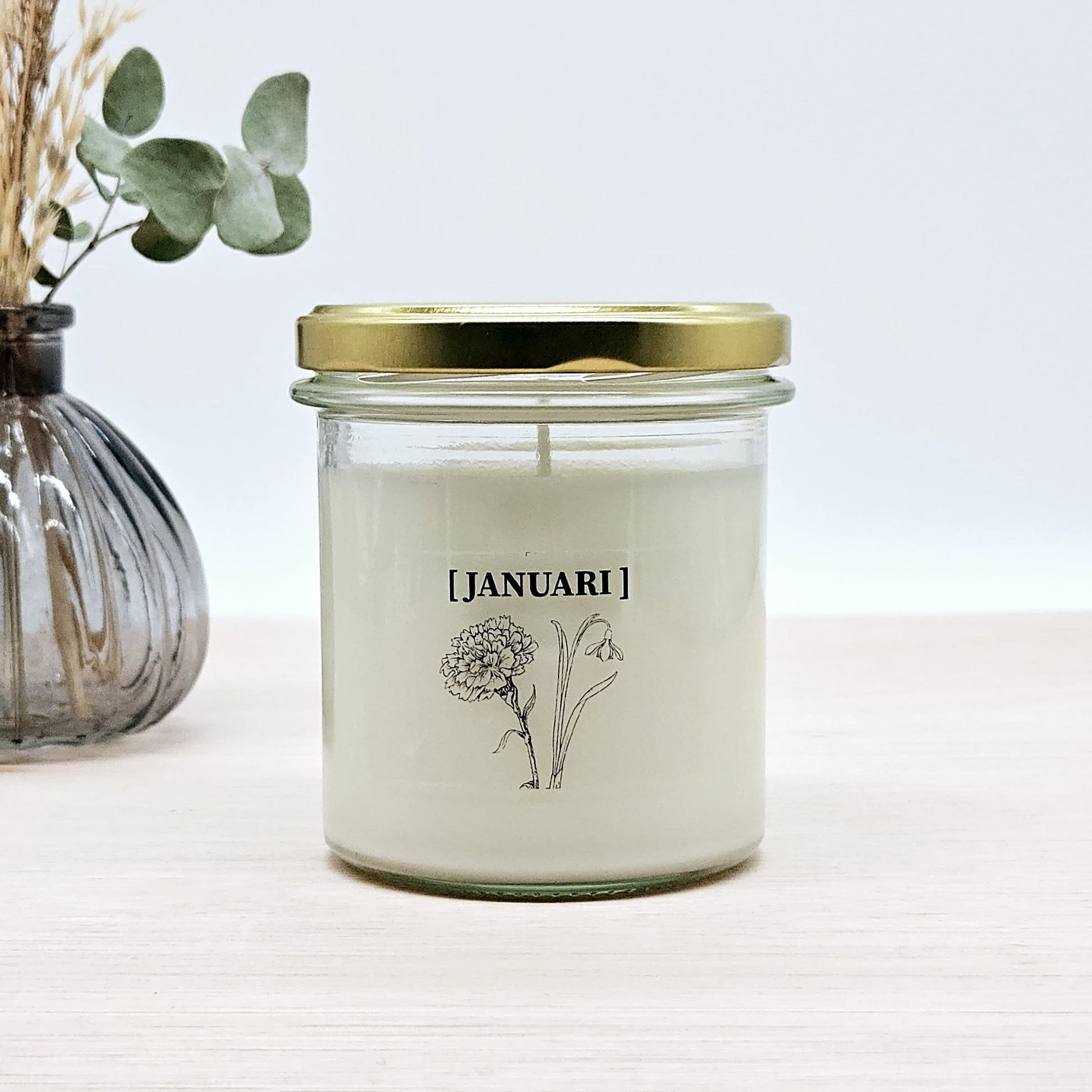 Candlelight-on - geurkaars met geboortebloem en geboortedatum - januari - o.b.v. sojawas en etherische oliën