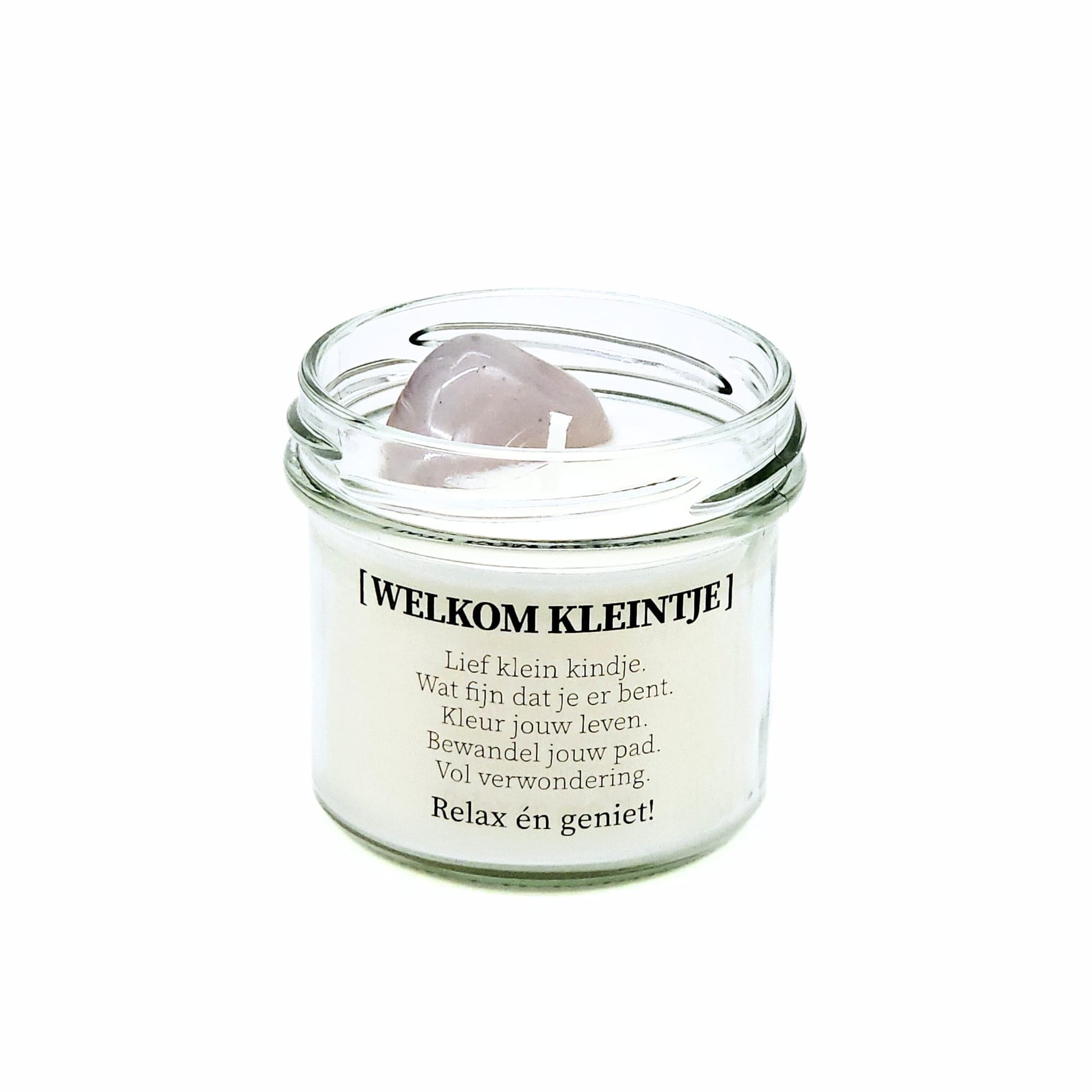 Deze geurkaars met edelstenen is handgemaakt op basis van etherische olie en natuurlijke sojawas.