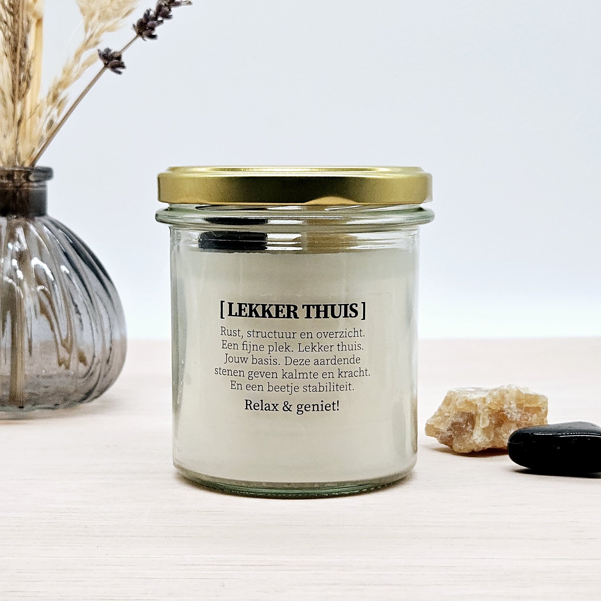 Deze geurkaars met edelstenen is handgemaakt op basis van etherische olie en natuurlijke sojawas.