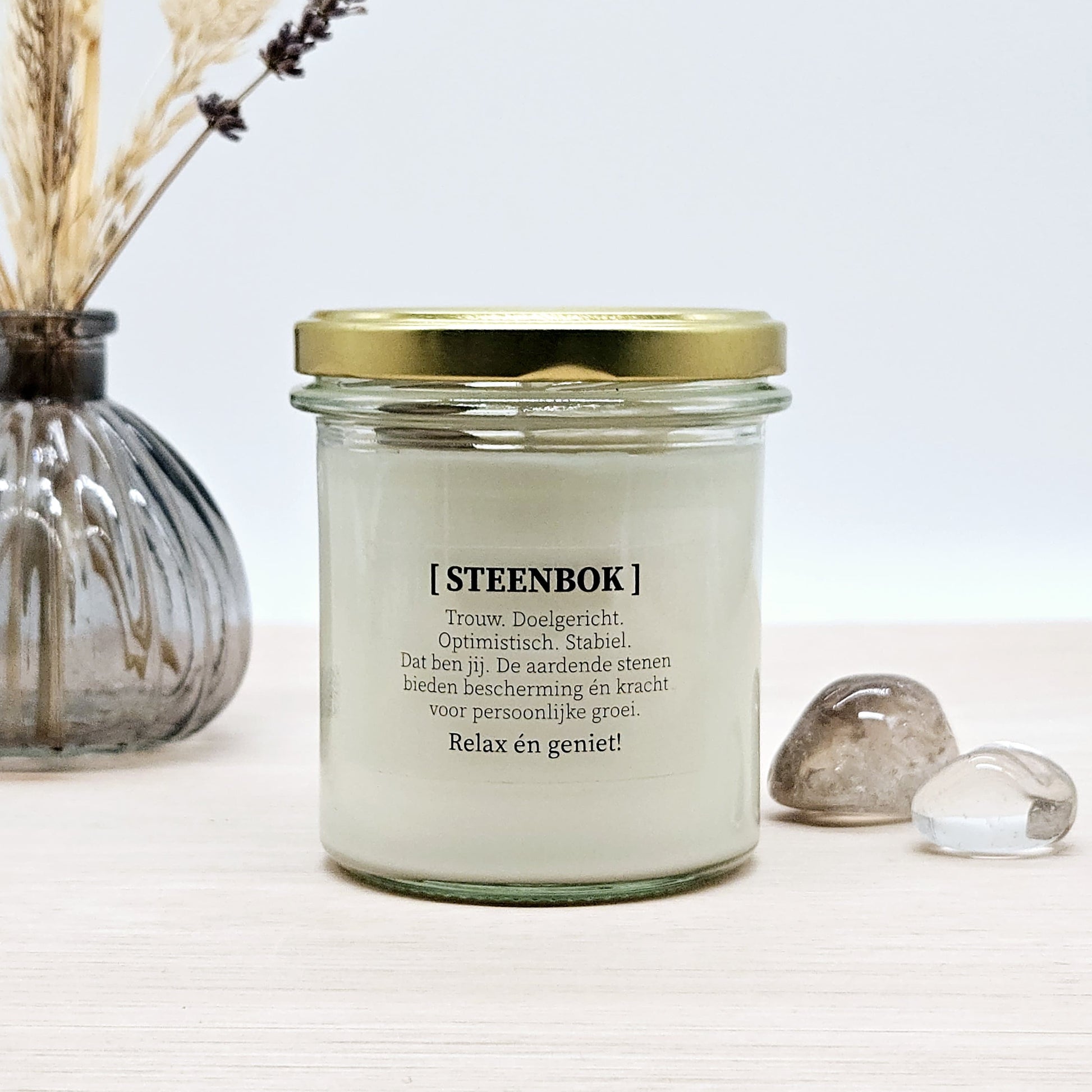 Deze geurkaars met edelstenen past bij jouw sterrenbeeld en is handgemaakt op basis van etherische olie en natuurlijke sojawas.