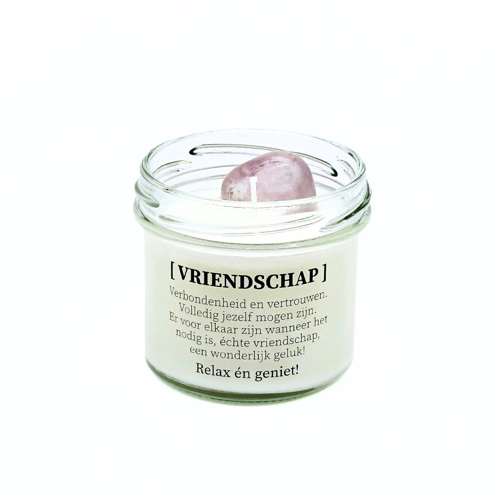 Deze geurkaars met edelstenen is handgemaakt op basis van etherische olie en natuurlijke sojawas.