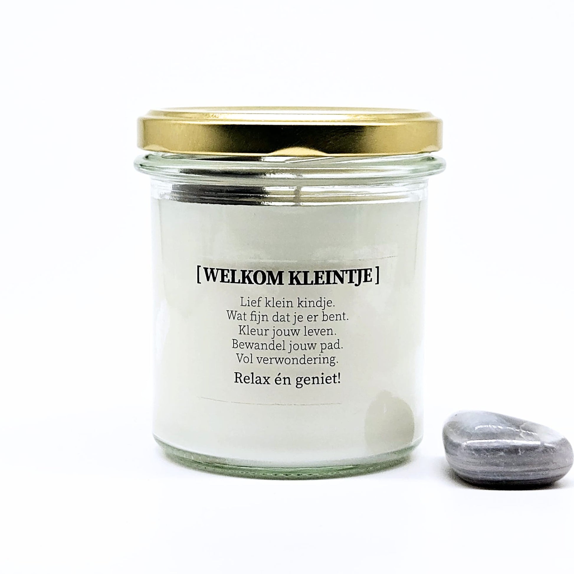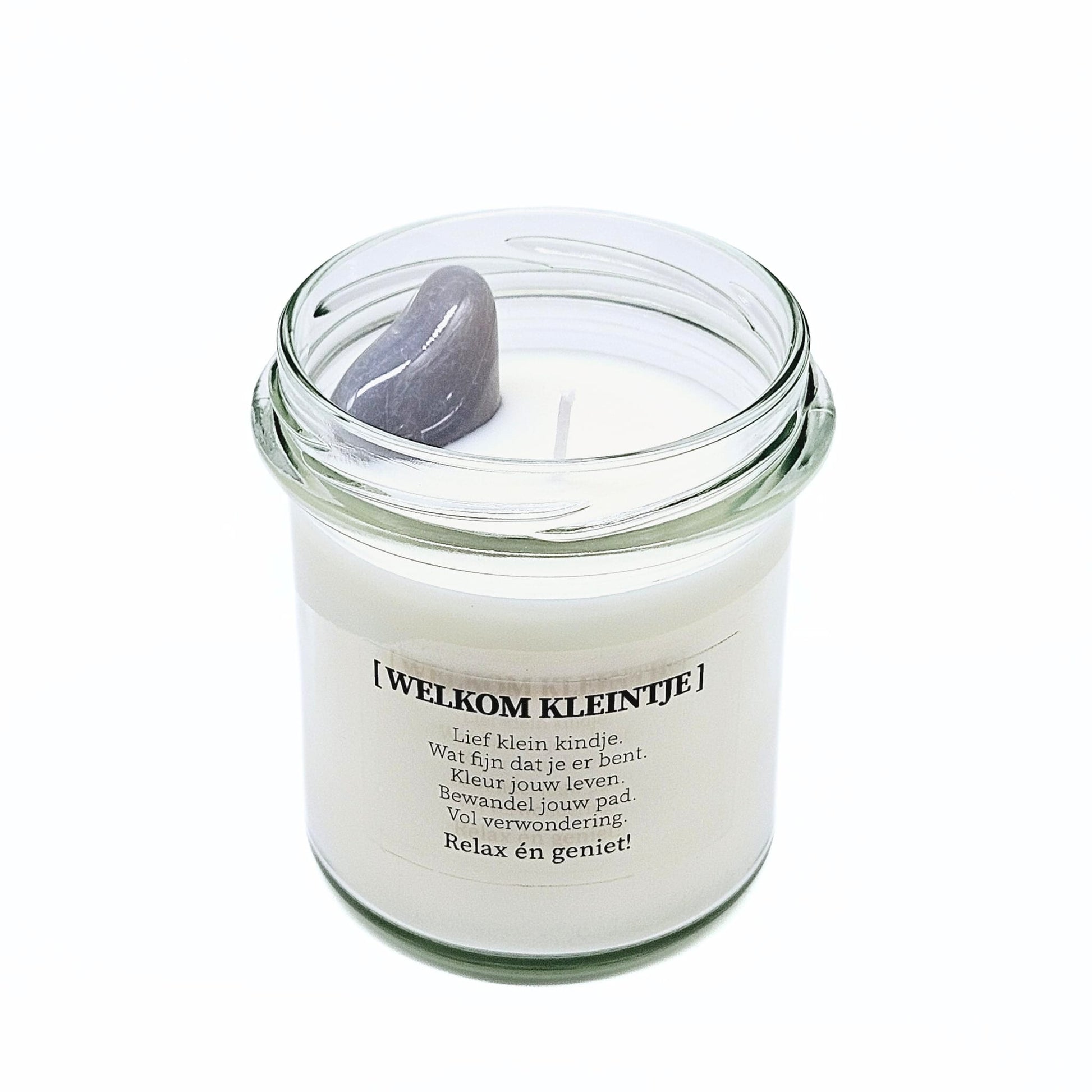 Deze geurkaars met edelstenen is handgemaakt op basis van etherische olie en natuurlijke sojawas.