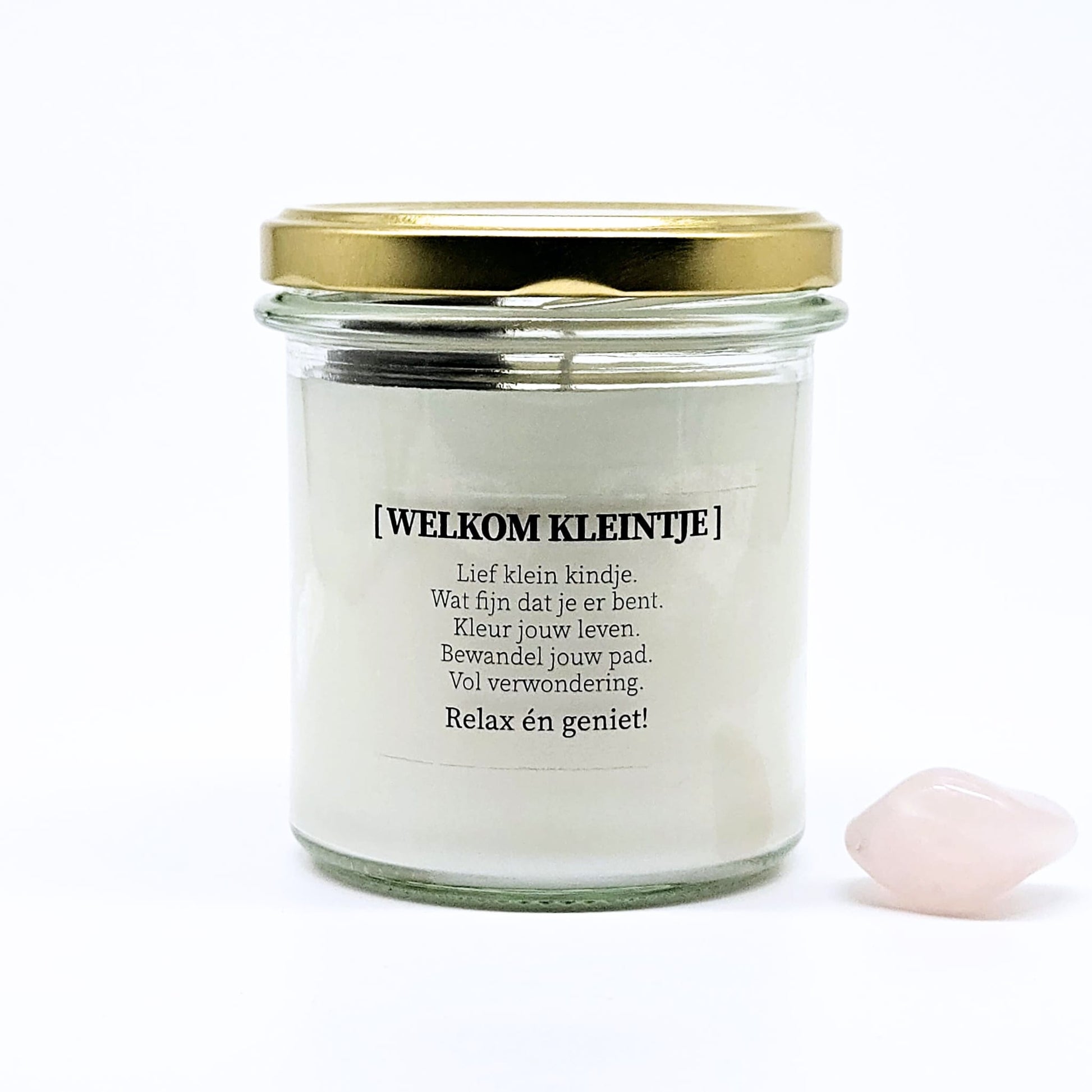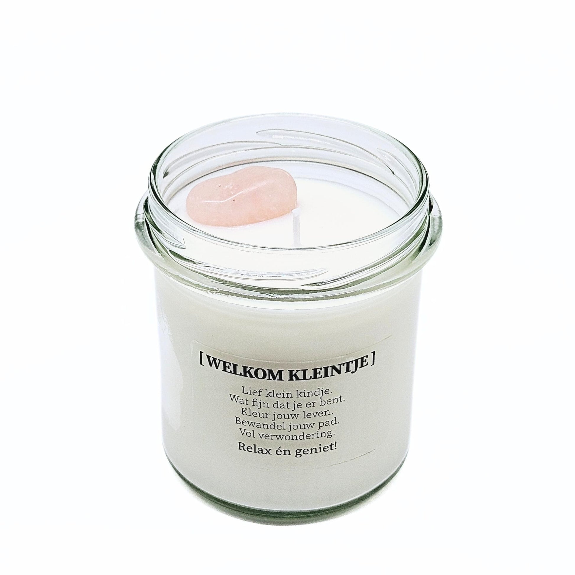 Deze geurkaars met edelstenen is handgemaakt op basis van etherische olie en natuurlijke sojawas.
