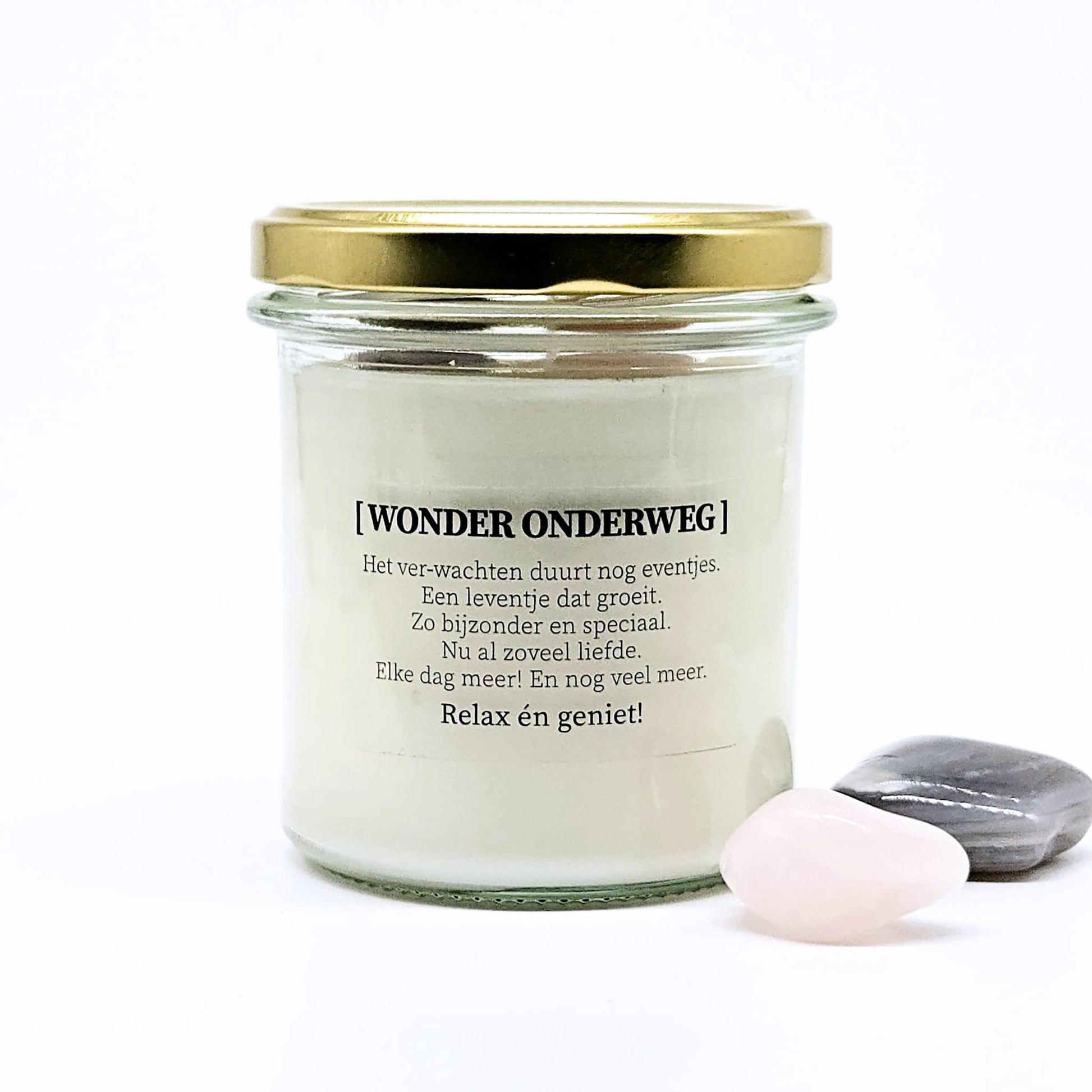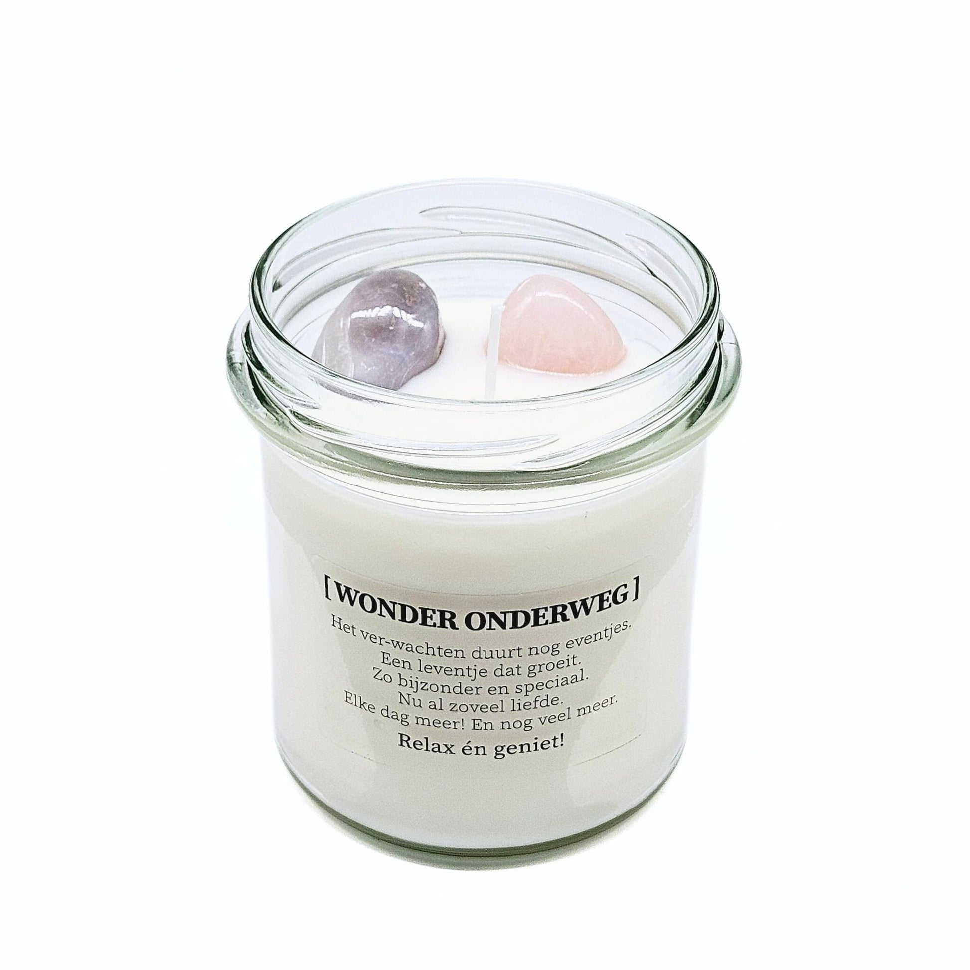 Deze geurkaars met edelstenen is handgemaakt op basis van etherische olie en natuurlijke sojawas.