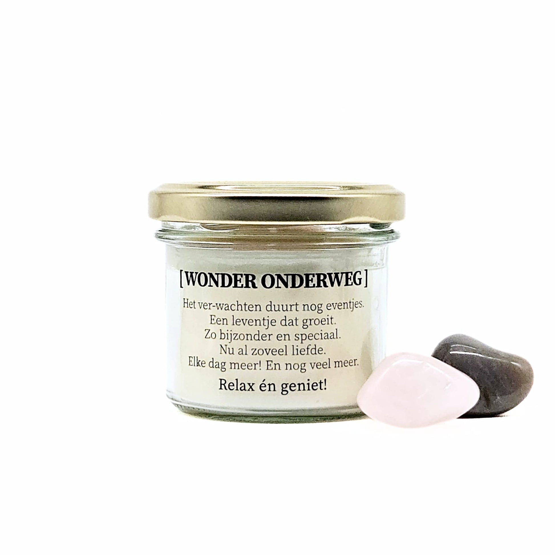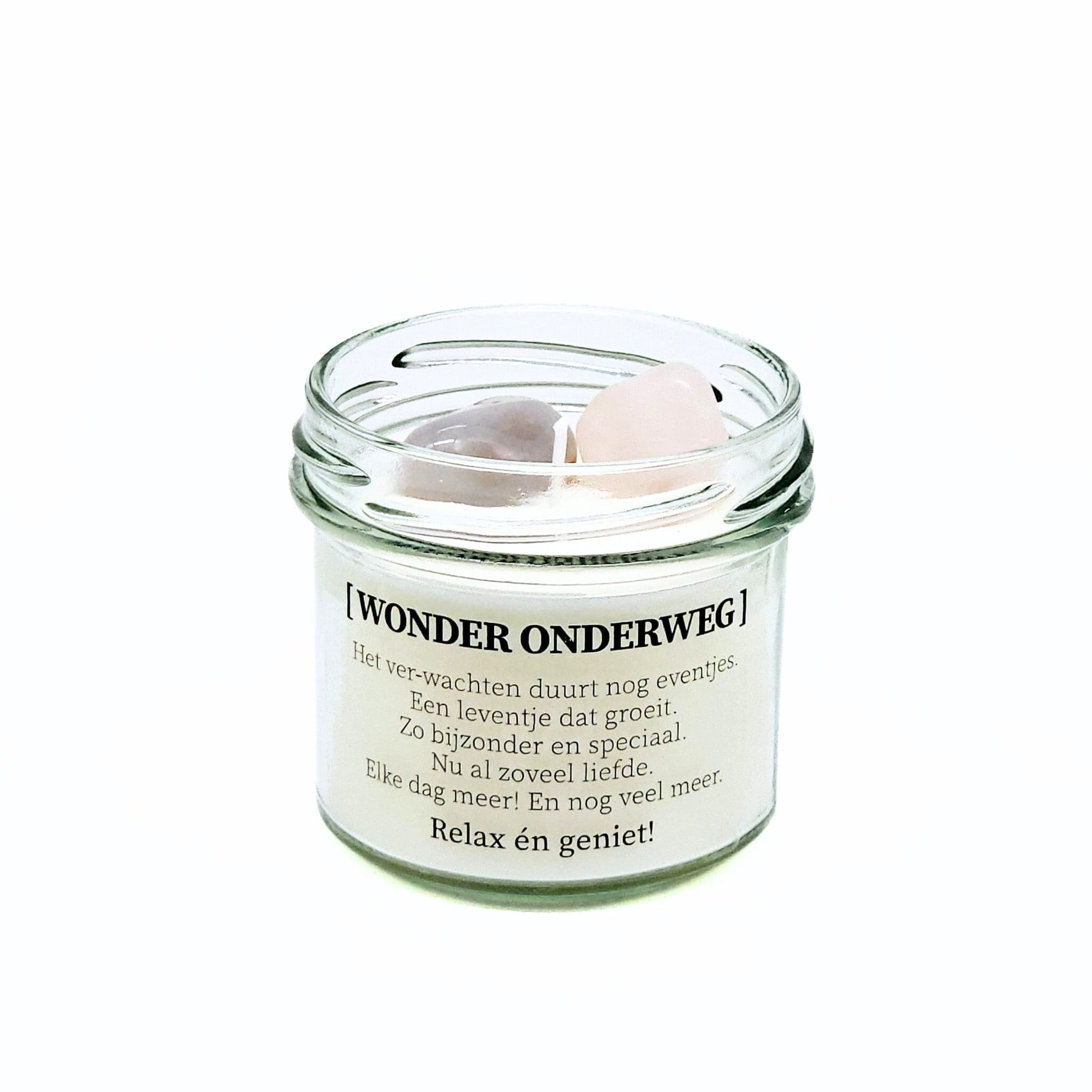 Deze geurkaars met edelstenen is handgemaakt op basis van etherische olie en natuurlijke sojawas.