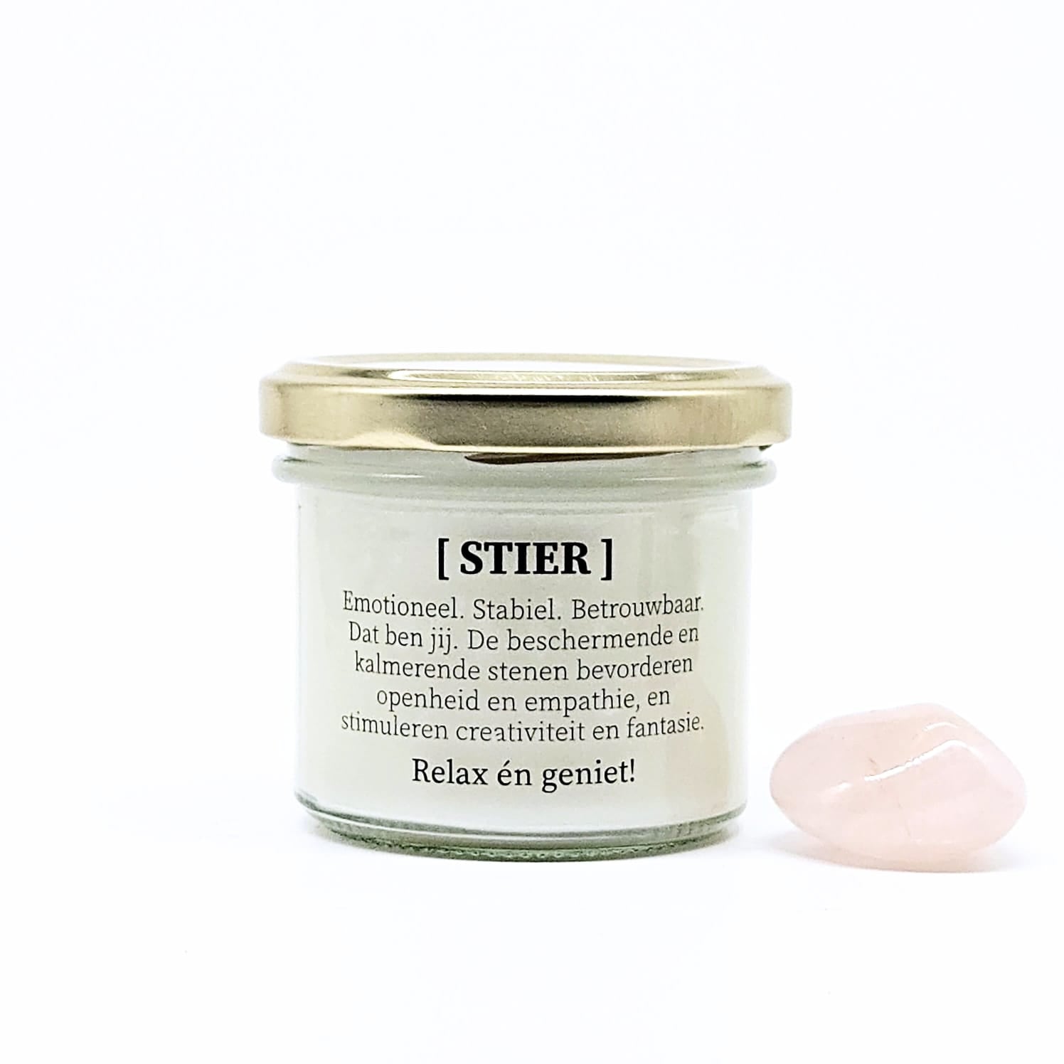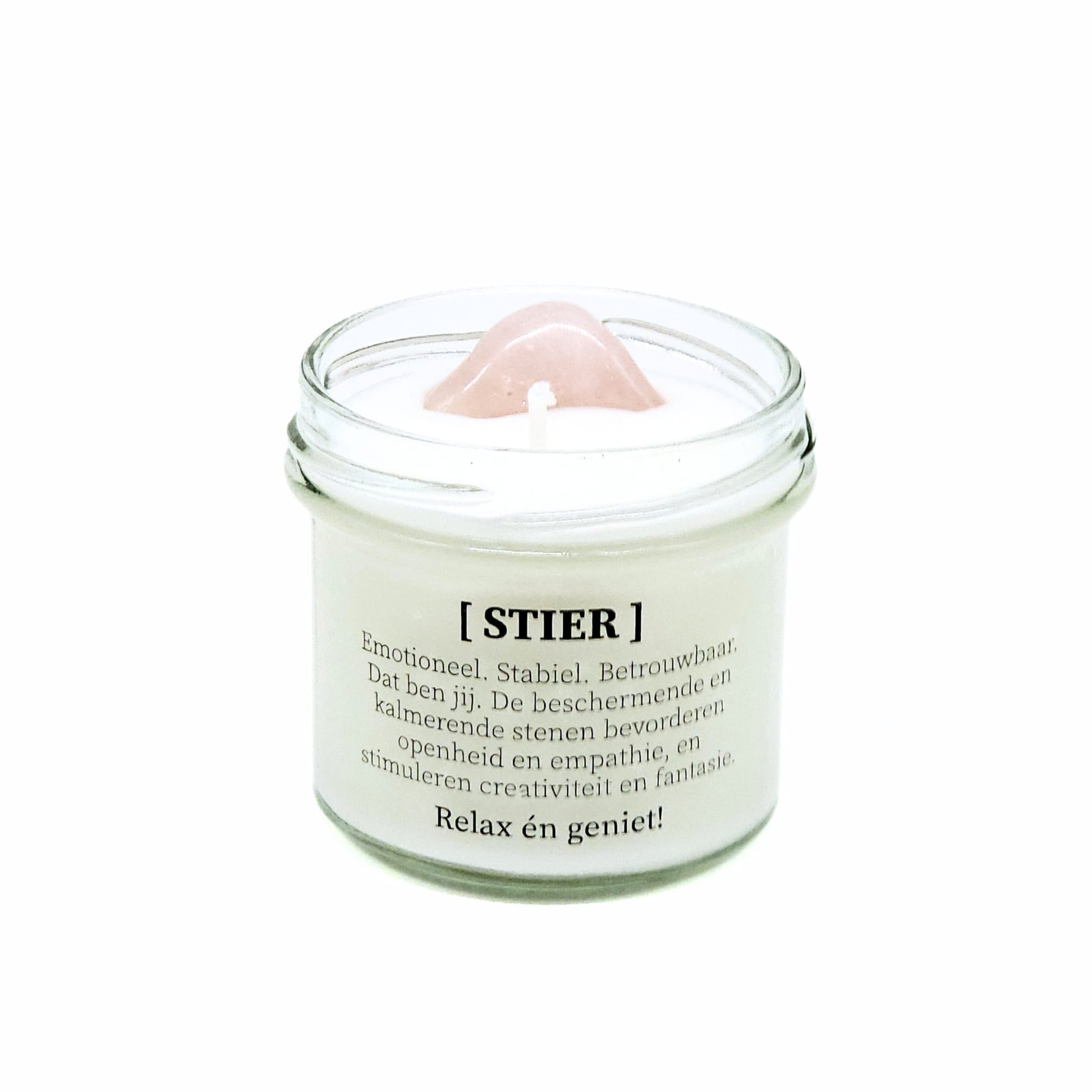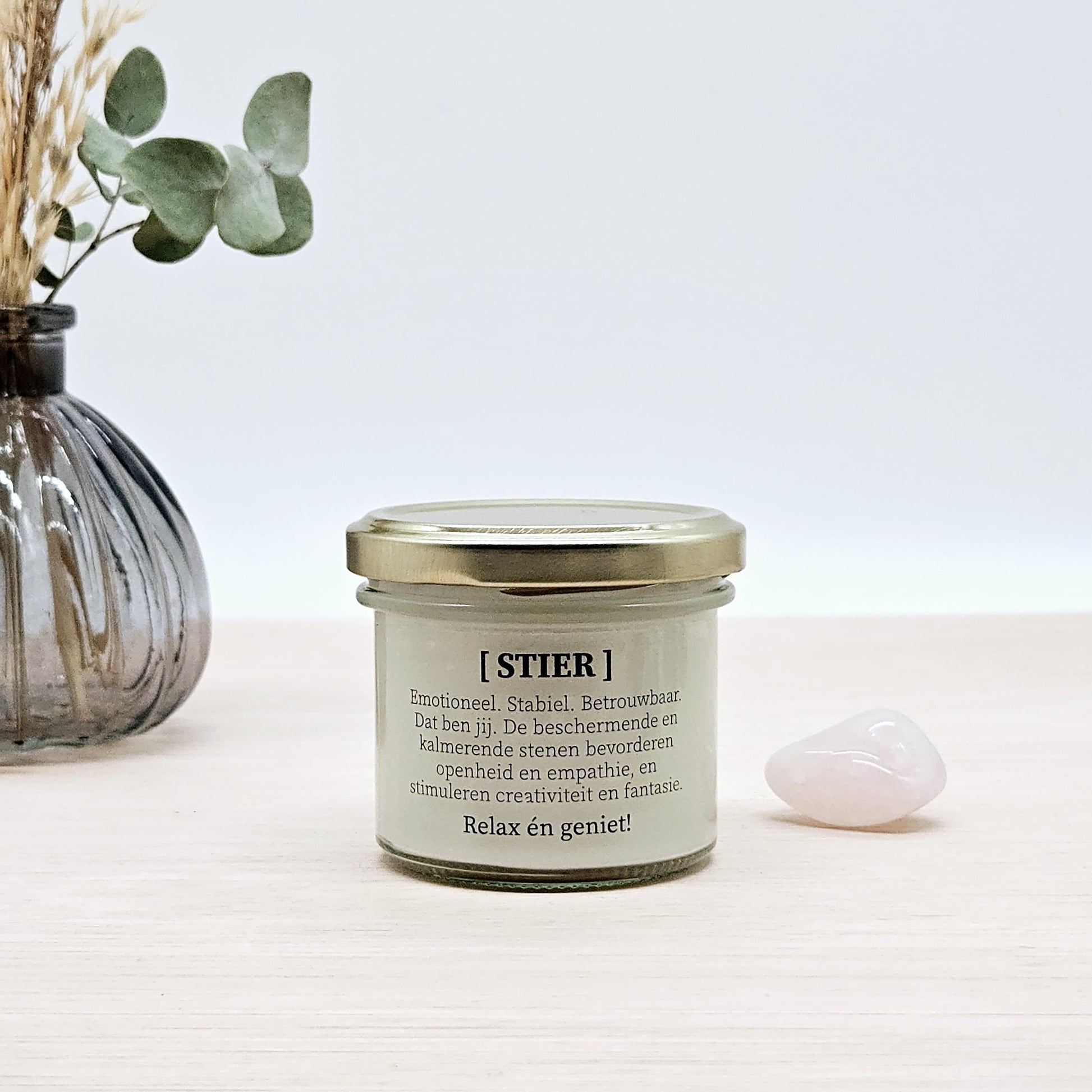 Deze geurkaars met edelstenen past bij jouw sterrenbeeld en is handgemaakt op basis van etherische olie en natuurlijke sojawas.